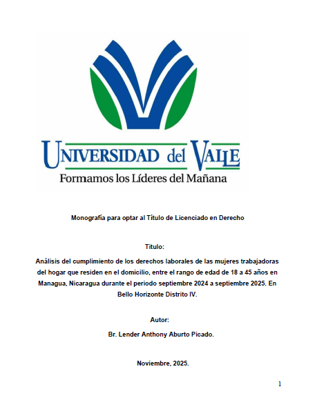 La investigación titulada “Análisis del cumplimiento de los derechos laborales de las mujeres trabajadoras del hogar que residen en el domicilio donde laboran, entre el rango de edad de 18 a 45 años en Managua, Nicaragua”, tiene como propósito principal analizar el nivel de cumplimiento y efectividad de los derechos laborales reconocidos por la Constitución Política de Nicaragua, el Código del Trabajo y los convenios internacionales ratificados por el Estado.