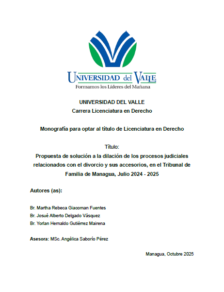 La presente investigación analiza la dilación en los procesos judiciales de divorcio y sus accesorios en el Tribunal de Familia de Managua, identificando las principales causas que limitan la celeridad procesal y afectan el acceso a la justicia. El estudio parte del reconocimiento de que, pese a la existencia de un marco normativo adecuado contenido en el Código de Familia, la realidad operativa evidencia una serie de debilidades estructurales, administrativas y humanas que generan retrasos significativos. El objetivo general consistió en determinar los factores que originan la dilación procesal y proponer estrategias que contribuyan a mejorar la eficiencia judicial en materia de familia. Metodológicamente, se empleó un enfoque cualitativo, con diseño descriptivo y analítico, basado en entrevistas semiestructuradas a abogados y usuarios del sistema, complementadas con el análisis documental de normativa y procedimientos institucionales. Los resultados evidencian que las principales causas de retraso se relacionan con la sobrecarga laboral, los errores en las notificaciones, la descoordinación interinstitucional y la necesidad de modernización tecnológica. Se concluye que la dilación es un problema sistémico y multicausal que exige intervenciones integrales orientadas a la digitalización de expedientes, la capacitación del personal, la estandarización de protocolos y la creación de mecanismos de transparencia y control de gestión. Y se presenta una propuesta de solución.