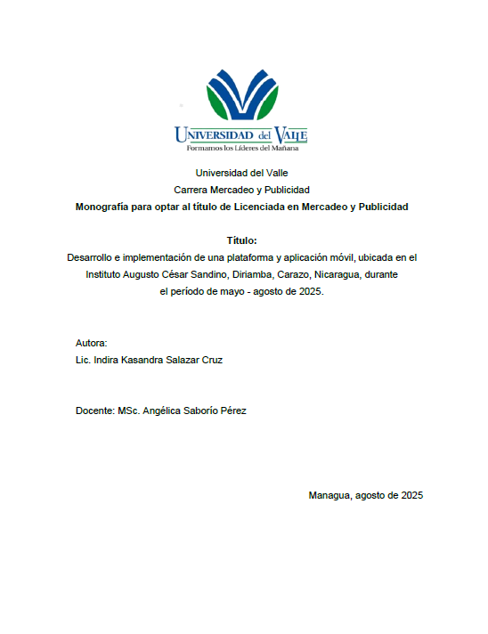 A través de la presente investigación se desarrolla e implementa una plataforma y aplicación móvil, que contribuye significativamente a la mejora de la calidad y calidez, en el desempeño laboral y comunicativo de docentes, alumno y/o protagonista en la educación en Nicaragua, fortaleciendo las capacidades pedagógicas y tecnológicas, en Diriamba, Carazo, Nicaragua - Instituto Augusto Cesar Sandino en el período de mayo – agosto 2025.