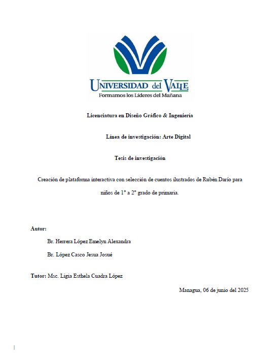Esta investigación se centra en el diseño y desarrollo de una plataforma interactiva que integra cuentos ilustrados de Rubén Darío, adaptados para niños de 1° a 2° grado de primaria. El objetivo principal es fortalecer el vínculo de los niños con la lectura y el legado literario de Darío, utilizando recursos visuales y actividades interactivas. Se desarrolló un libro interactivo con cuentos ilustrados y dinámicas, complementado por una plataforma web que integra actividades lúdicas digitales.