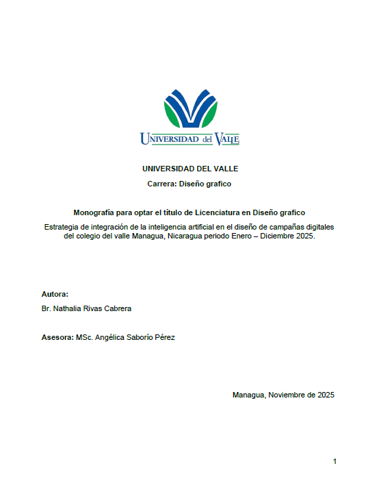En un entorno educativo cada vez más influenciado por la digitalización, el Colegio del Valle de Managua busca modernizar sus estrategias comunicacionales mediante la integración de la inteligencia artificial (IA) en sus campañas digitales. Esta investigación analiza cómo las herramientas de IA pueden optimizar la difusión institucional, mejorar el alcance y fortalecer la imagen del colegio frente a la comunidad educativa. Los antecedentes demuestran que, aunque en Nicaragua la adopción tecnológica es limitada, existe un creciente interés por incorporar soluciones digitales que impulsen la innovación educativa y la eficiencia en la comunicación institucional.