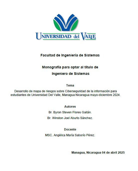 El presente trabajo investigativo titulado Desarrollo de mapa de riesgos sobre Ciberseguridad de la información para estudiantes de Universidad Del Valle, Managua Nicaragua mayo-diciembre 2024, tiene por objetivo el análisis e implementación de un mapa de riesgos, mediante la identificación de vulnerabilidad, exposición, gravedad y alteración de las medidas de seguridad actuales.