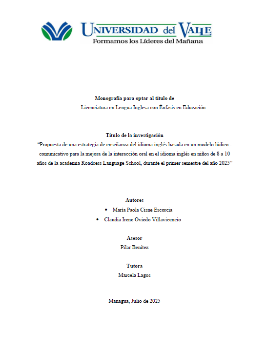 Esta investigación cualitativa tiene como objetivo diseñar estrategias metodológicas contextualizadas y pertinentes que optimicen el proceso de enseñanza del idioma inglés en estudiantes de sexto grado del Valley School, Managua, durante el primer semestre del año lectivo 2025. La problemática surge ante la persistente dificultad de los estudiantes para desarrollar competencias comunicativas efectivas en inglés, debido al predominio de prácticas pedagógicas tradicionales centradas en la memorización y la gramática, en detrimento de enfoques comunicativos, lúdicos y participativos.