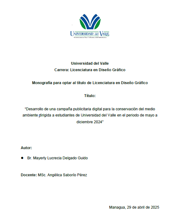 El objetivo de la investigación se centró en el desarrollar una campaña publicitaria digital dirigida a los estudiantes de la Universidad del Valle, en Nicaragua, con el propósito de sensibilizarlos sobre la conservación del medio ambiente. El enfoque de esta misma fue descriptivo utilizando técnica de encuesta con un enfoque cuantitativo lo que permitió llegar a saber las opiniones y mejores hacia el contenido ambiental proporcionado en las redes sociales de dicha alma mater.