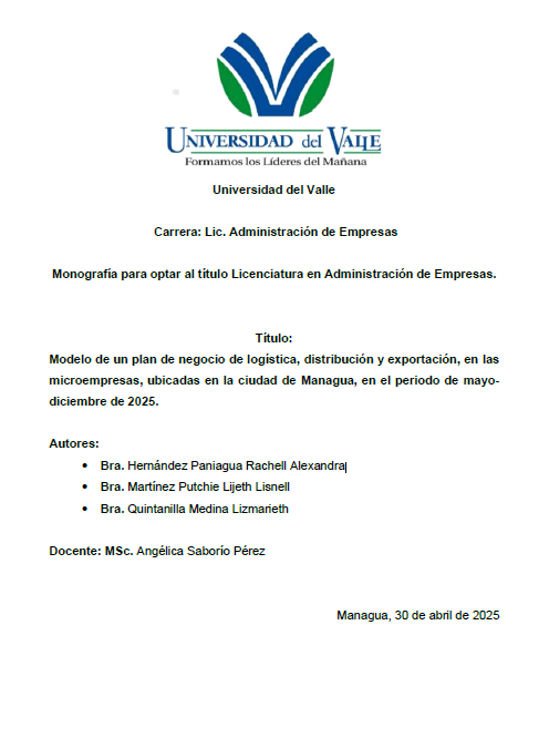 El presente trabajo de investigación tiene como objetivo desarrollar un modelo de plan de negocios especializados en logística, distribución y exportación para las microempresas ubicadas en la ciudad de Managua, en el periodo de mayo a diciembre de 2025. Las micro, pequeñas y medianas empresas (MIPYMES) son fundamentales para la economía de Nicaragua, y el estudio busca proponer un modelo practico que responda a las necesidades y limitaciones de estas empresas, mejorando su competitividad en el comercio internacional.
