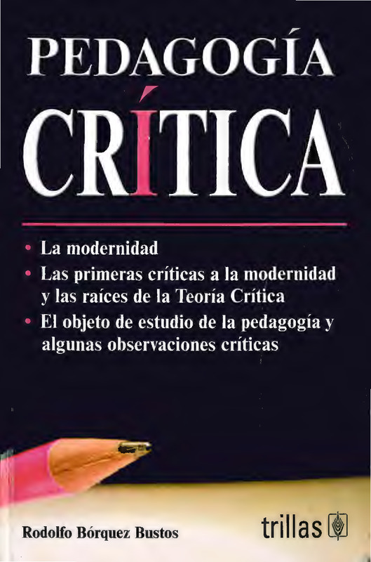 Este libro describe las principales características de la modernidad, la crítica que hace la teoría social crítica de esta época histórica, y la vinculación que existe entre este paradigma y la pedagogía crítica.