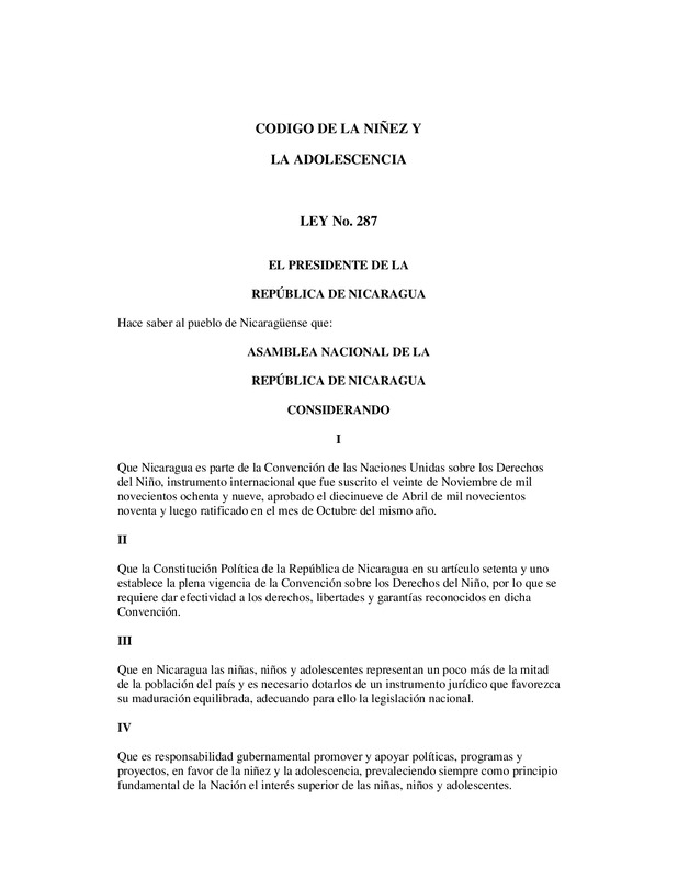 Ley. 287. Código de la Niñez y de la Adolescencia