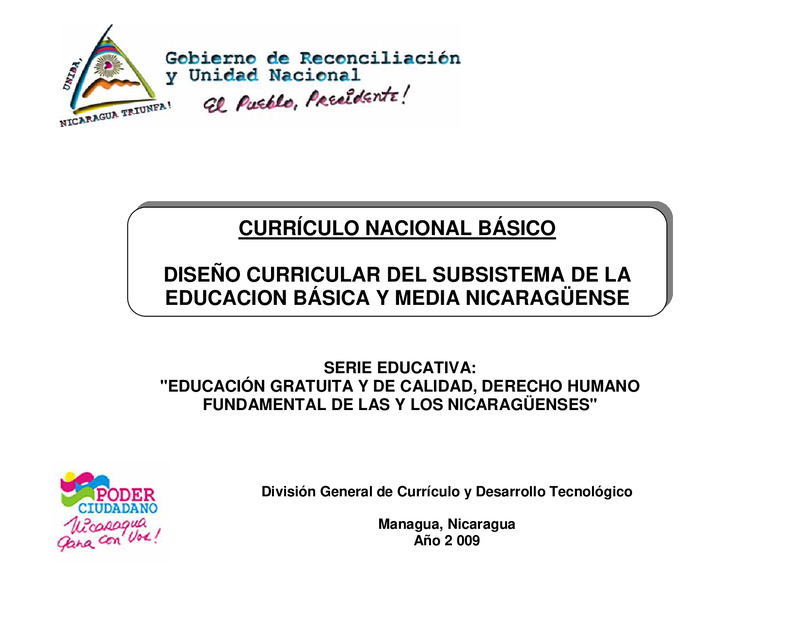 El Ministerio de Educación, presenta a la Comunidad Educativa, a nivel nacional el Diseño Curricular del Subsistema de la Educación Básica y Media Nicaragüense, proyecto de gran relevancia para nuestro país, porque recupera el perfil científico, técnico y sobre todo humanístico de la educación; presenta los fundamentos pedagógicos, filosóficos, psicológicos, sociológicos, ambientales y epistemológicos con los cuales se orienta la formación de los niños, niñas, adolescentes jóvenes y adultos, en el marco de propiciar aprendizajes permanentes, comprensivos, críticos y sobre todo que le sirvan para su vida personal, social y laboral