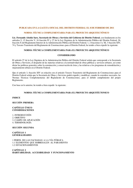 Norma Técnica Complementaria para el proyecto Arquitectónico