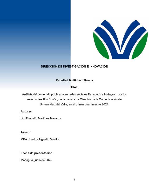 El presente estudio tuvo como objetivo general analizar el contenido publicado en Facebook e Instagram por estudiantes de tercer y cuarto año de la carrera de Ciencias de la Comunicación de la Universidad del Valle durante el primer cuatrimestre de 2024, evaluando la calidad de las publicaciones de acuerdo con criterios técnicos y éticos establecidos. La pregunta central investigó si dichos estudiantes generan contenidos de calidad según estándares de resolución, redacción y originalidad.